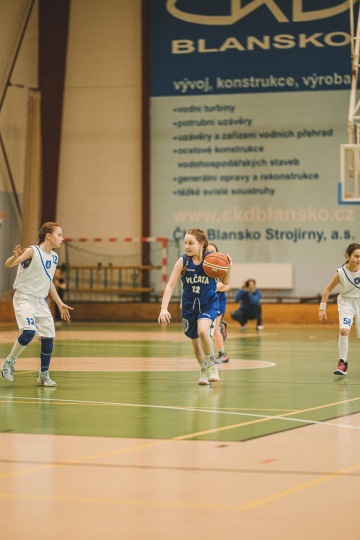 Nejmladší minižákyně kategorie U11 měly před sebou při snaze probojovat se na Národní finále nesmírně náročný úkol – zvládnout zápasy s lokálním rivalem z Blanska na jeho palubovce. „Z domácího prostředí jsme si vezly náskok 3 bodů, což prakticky nic neznamenalo,“ uvědomovala si trenérka Stočková a dodala: „Na holkách byla vidět nervozita, ale od začátku šlapaly v obraně a skvělou defenzivou si zajistily snadnější cestu ke koši. Balony jsme si vyloženě vydřely na své polovině a o to jednodušší jsme měly přechod na tu druhou. Smekám před tím, jak se holky semkly.“