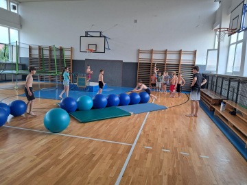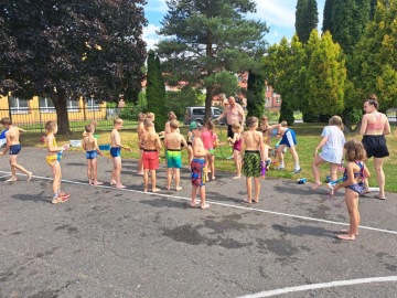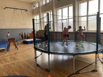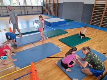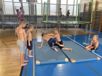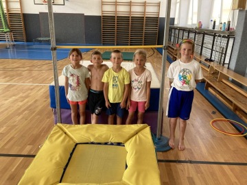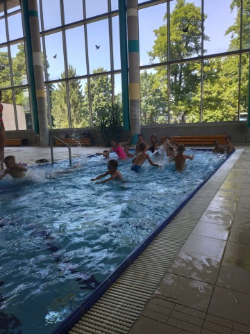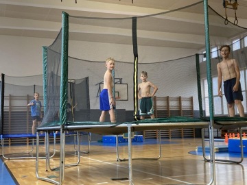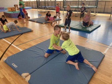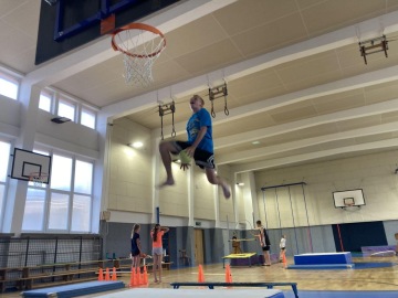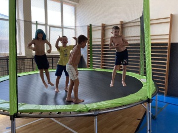 Specialitou letošních táborů pak byla Jump Arena, kterou trenéři baketbalového klubu pro holky a kluky připravili. Každý den, tak mohly děti využít tři velké trampolíny a pod vedením trenérů absolvovaly i gymnastickou a akrobatickou průpravu na gymnastických trampolínách. K basketbalu to sice mělo daleko, ale zábavy to bylo spousta a děti si osvojily spoustu nových dovedností. Ani letos nechybělo odpoledne v bazénu pro každou táborovou skupinu. A bazén, to nebyl jenom relax ve wellness, ale stejně jako v tělocvičně a na hřišti, i v bazénu mohly děti rozvíjet svoje plavecké dovednosti pod vedením instruktorky plavání. Děti se určitě nenudily ..... a každý den večer spokojeně usínaly (o: