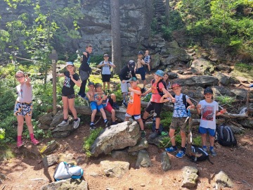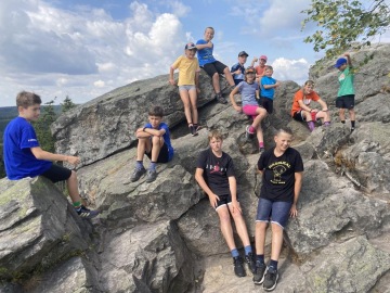 Kromě tradiční nálože míčových a pohybových her, orientačního běhu a biatlonu si zdolali kluci a holky při celodenní expedici "Korunu Vysočiny". Po vzoru Radka Jaroše se vydali na výpravu, při které zdolali hned 8 osmistovkových vrcholů Žďárských vrchů. Nebyla to jednoduchá záležitost - slunce, déšť, převýšení, vzdálenost atd. s tím vším se kluci a holky dokázali porvat a bezpečně se vrátit na základnu - klubovou halu.